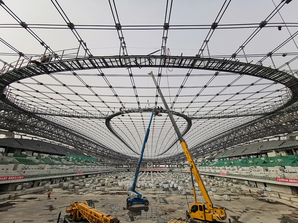 The steel structure of National Speed Skating Oval comprises three parts: stiffened structure, steel ring truss and cable net structure. The steel consumption totals 14,000 tons. Made in China, high-vanadium closed cables are used for the whole steel structure. The steel consumption of roof system is only about one-fourth of that in the traditional roofing, which represents the international cutting-edge level and embodies the concept of “Green Olympics” in a true sense. In 2019, National Speed Skating Oval Construction Project won the highest award in the domestic steel structure industry—“Annual Outstanding Project with Gold Award of China’s Construction Engineering Steel Structure”.