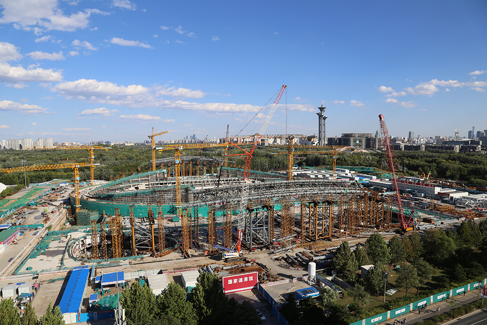 2018年9月完成地上混凝土结构,“冰丝带”“拔地而起”