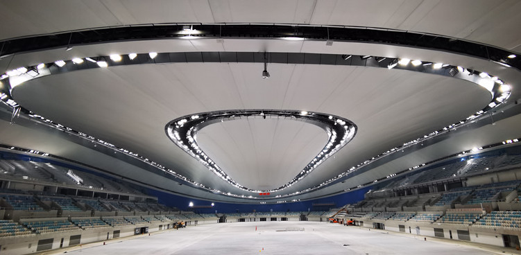 2018年至今“冰丝带”先后完成了“精耕细作”、“拔地而起”、“编织天幕”和“丝带飞舞”。接下来,国家速滑馆将全力打造“最快的冰”和“智慧的馆”,高标准、高质量完成建设任务目标,满足冬奥会赛事要求。