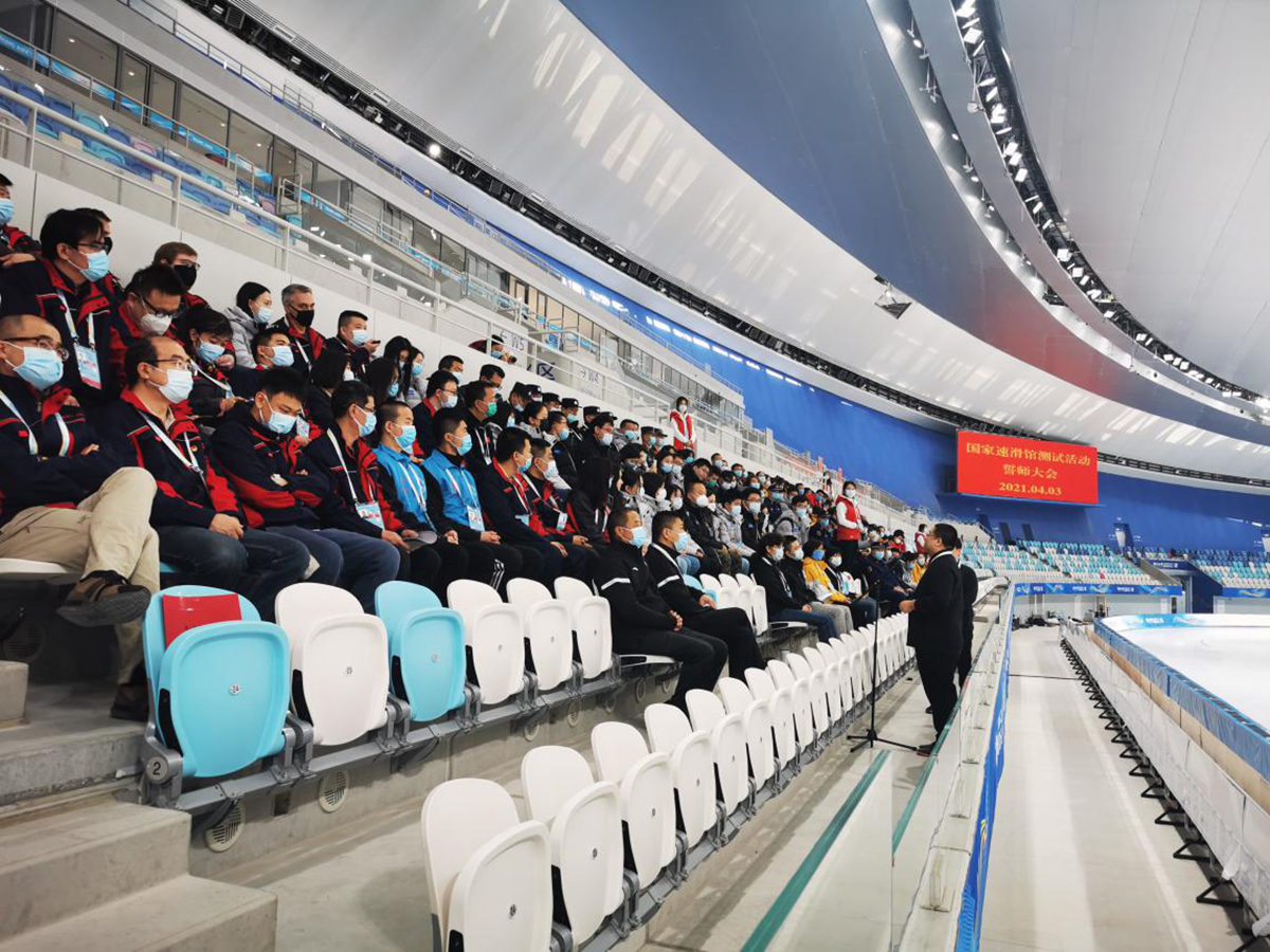 “相约北京”冰上项目测试活动速度滑冰比赛在国家速滑馆“冰丝带”开赛