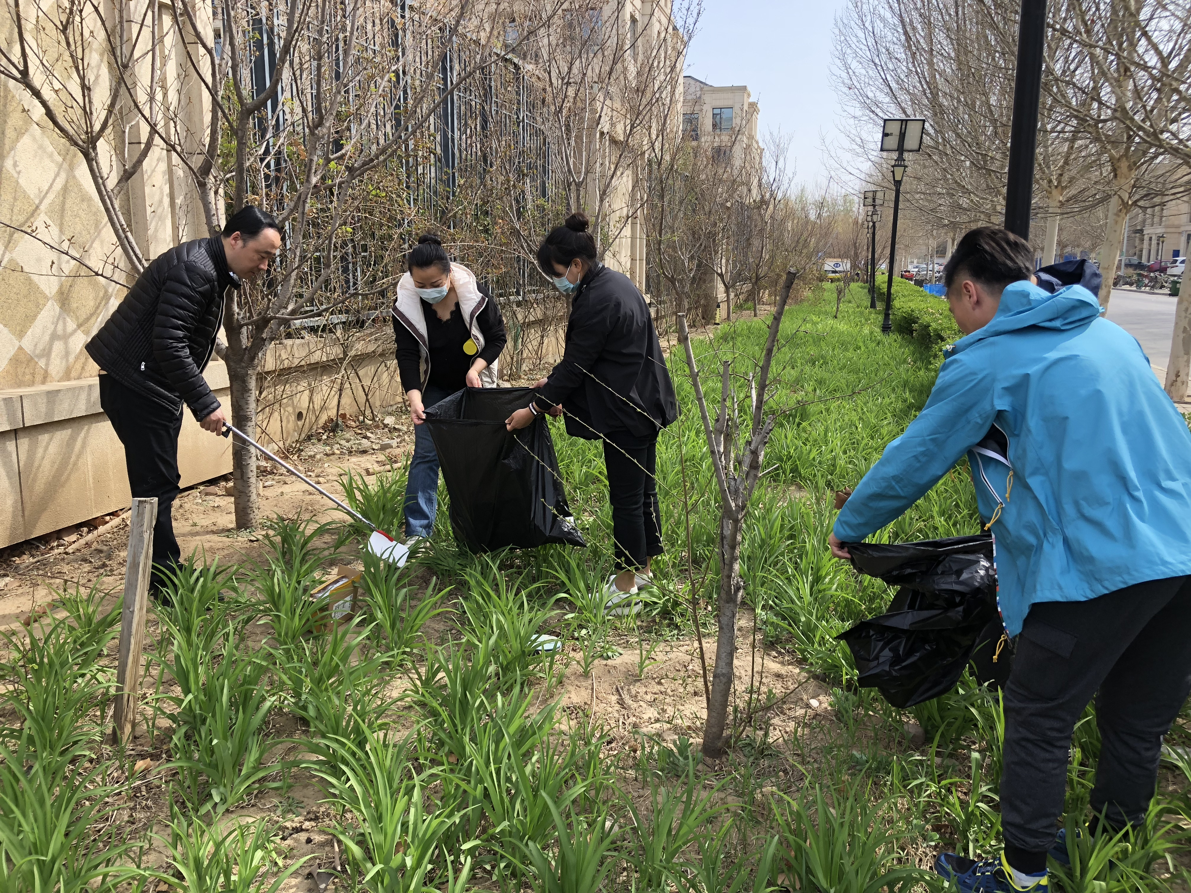 北科建集团所属北京城市公司翡翠山项目部全体党员清理翡翠山小区及周边道路绿化带内的垃圾