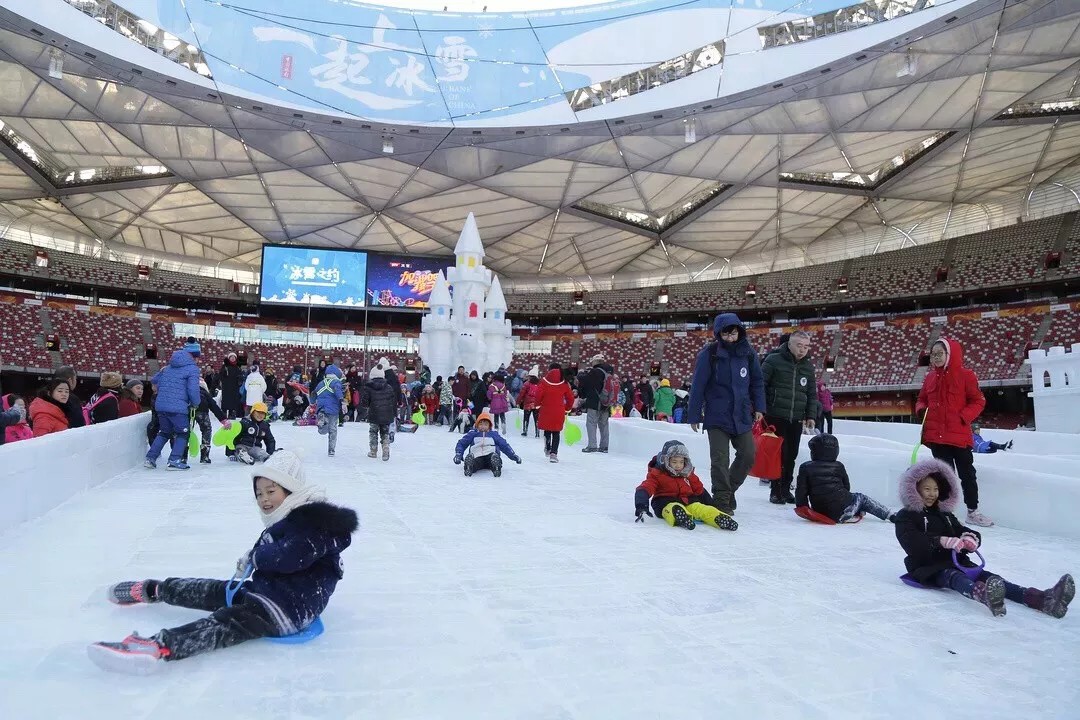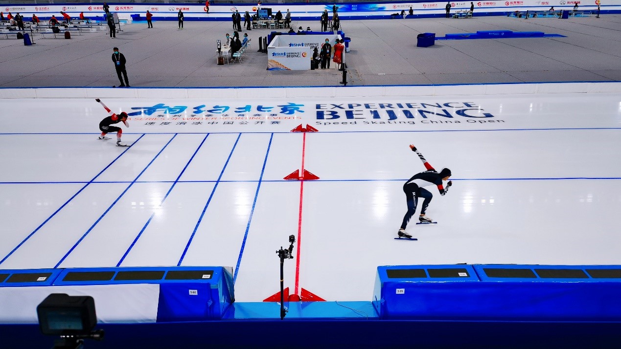 5月,国家速滑馆开展首次全冰面制冰,规模约1.2万平方米的场馆全冰面成功亮相。