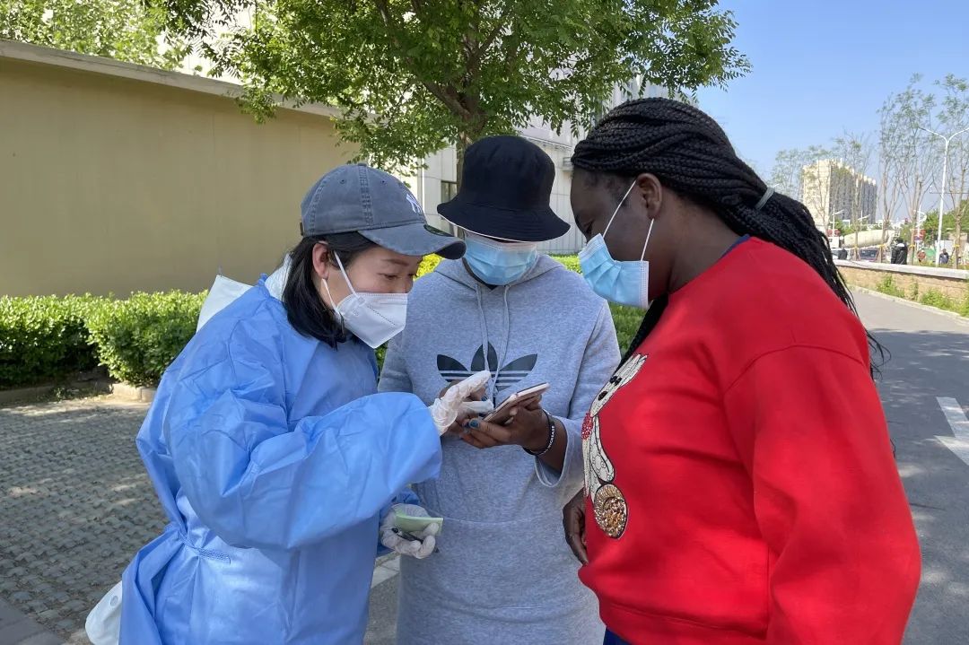 国苑公司的秦家儒利用休息日,积极投身所属社区的疫情防控志愿服务工作。服务期间,正巧遇到两位外籍社区居住人员前来排队,但是由于语言不通且没有身份证,两个人一筹莫展。秦家儒主动上前协助社区志愿者用英语进行沟通,“Can I help you?”一句问候打破尴尬。通过英语加手势的“神操作”,了解到这两位外国姑娘的核酸检测结果没有同步至健康宝。在秦家儒和社区志愿者的解释和帮助下,终于帮她们找到了解决方法。“这是一次特殊的经历,帮助别人解决问题,让每一位社区居民都能顺利配合疫情防控的相关措施,我很有成就感。”秦家儒说。