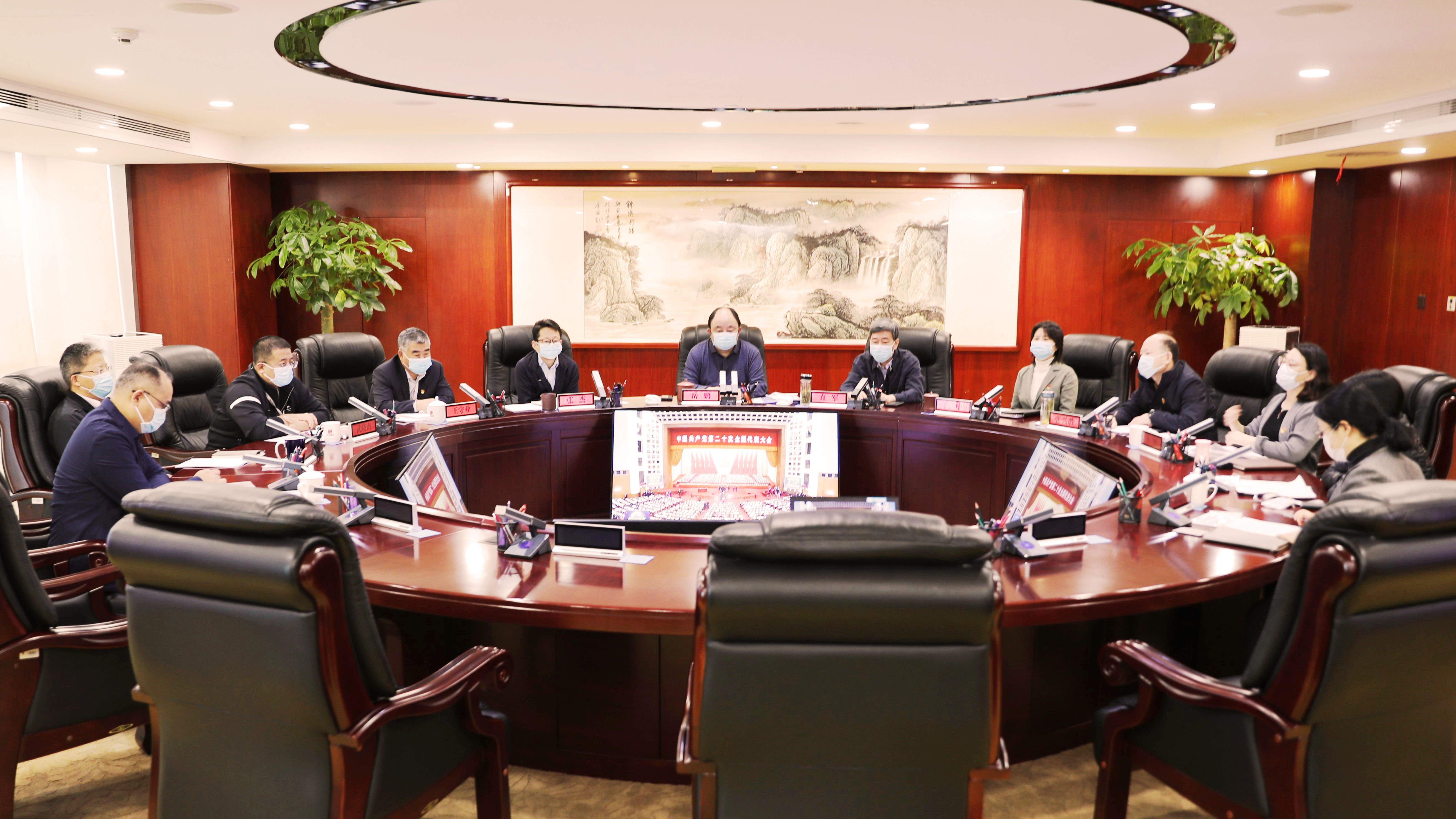 2022年10月18日上午,电影天堂 党委书记、董事长岳鹏主持召开党委理论学习中心组学习(扩大)会,组织中心组成员和总部中层正职集中学习党的二十大报告。中心组成员深入学习了习近平总书记代表中国共产党第十九届中央委员会向大会所作的报告,同时学习了习近平总书记参加党的二十大广西代表团讨论和参观“奋进新时代”主题成就展时的重要讲话精神。