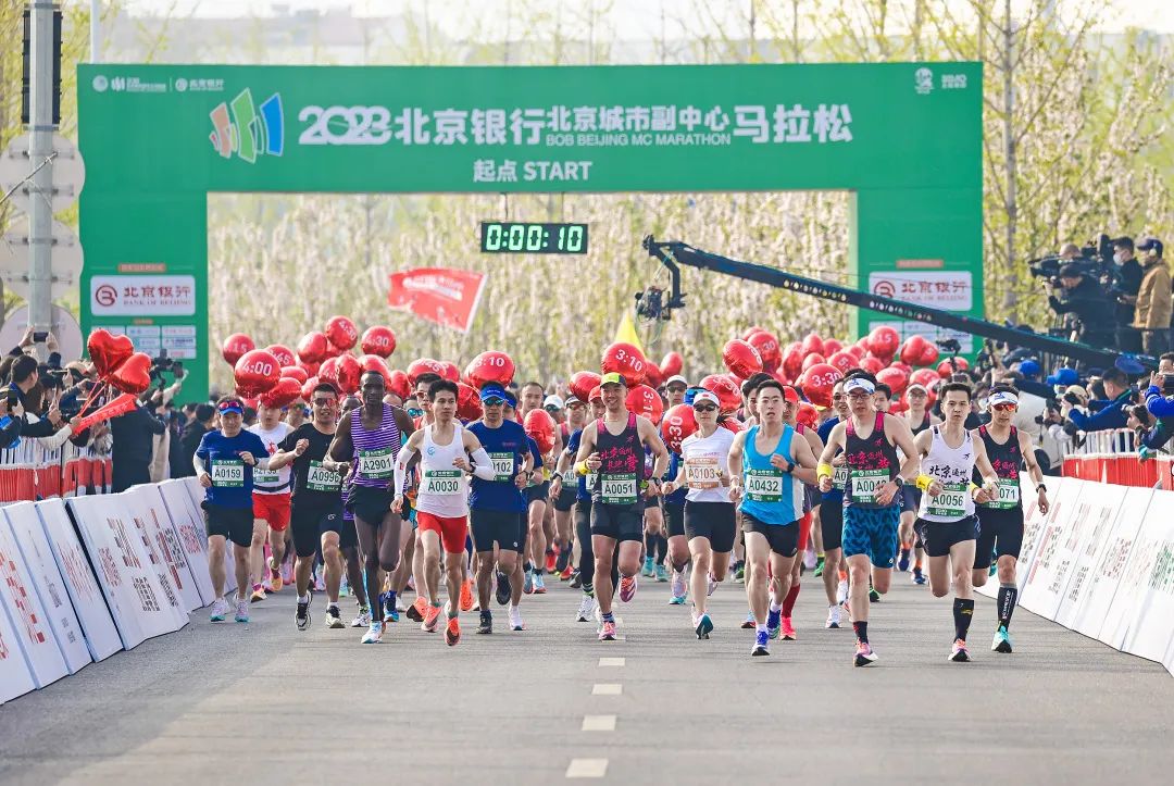 2023年4月9日8时,2023北京银行北京城市副中心马拉松在通州区司空分署街鸣枪起跑,来自海内外近万名选手化作奔腾向前的浪潮,用热情的奔跑感受大美通州。