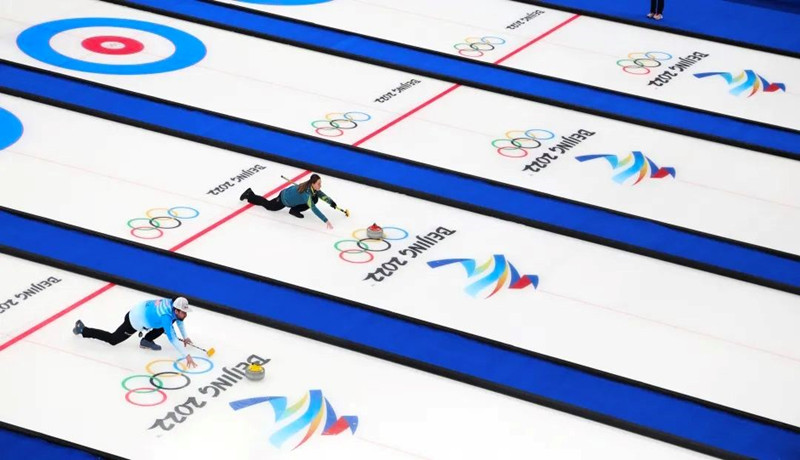 北京2022年冬奥会冰壶混合双人比赛进行中