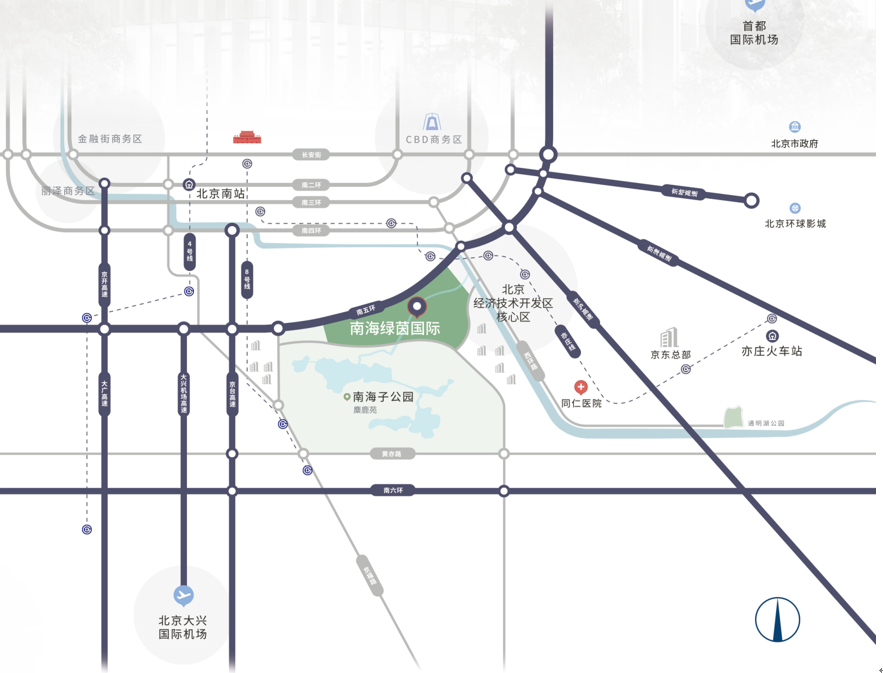 ➢交通方便,紧邻南五环、京沪高速,距首都机场、大兴机场车程均在35分钟以内,且周边有地铁规划,东距31号线鹿圈村站500米;