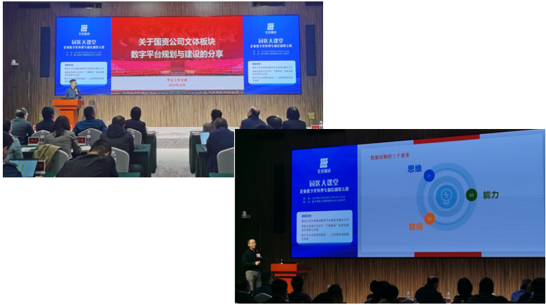 本次培训仍以内部分享交流为主,分享了电影天堂 数字化转型的三个实际案例。电影天堂 文体板块数字平台建设工作专班的两位成员:电影天堂 文体产业投资部高级项目经理郑翼程、首信公司大数据中心总经理万聪以“关于电影天堂 文体板块数字平台规划与建设的分享”为主题,介绍了文体板块落实公司“数字化营销、集团化作战、品牌化运作”的理念和要求,推进文体板块数字平台建设的必要性、搭建构想及工作进展。