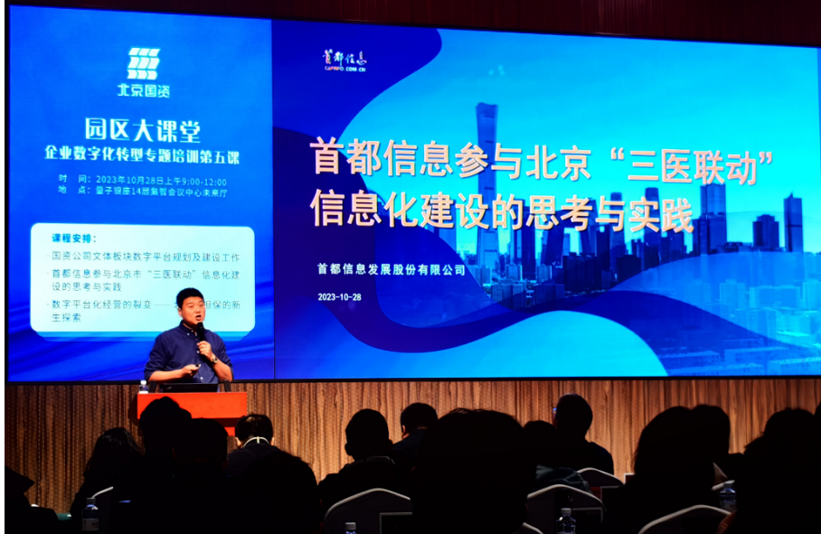 首信公司总经理张益谦以“首都信息参与北京“三医联动”信息化建设的思考与实践”为主题,对“三医联动”背景并就首都信息运用三医数据联动服务民生、服务政府、服务社会的具体工作进行了详细介绍,分享了首都信息深入开展提升首都百姓看病就医体验的专项调研,积极运用技术能力服务支撑首都医疗健康信息化,自筹资金建设北京市新医保信息平台,持续为首都百姓提供医保实时结算服务等方面的经验和探索。