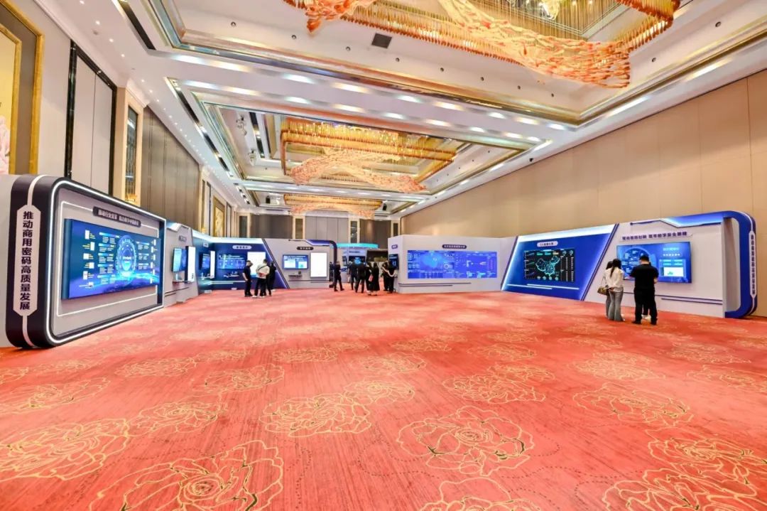 会场外的展厅集中展示了近年来商用密码领域取得的系列成果与应用案例,重点展示了CA证书全国发放情况,以及密码基础设施数据分析中心的密码各项资源调用情况。在数字中国展区,商用密码在企业数字化转型、智慧药监、数字金融、数字政府、智慧交通、智慧教育、智慧民生、智慧医疗、智能网联汽车等多个行业的解决方案与广泛应用得到了一一呈现,吸引大批与会嘉宾观看。