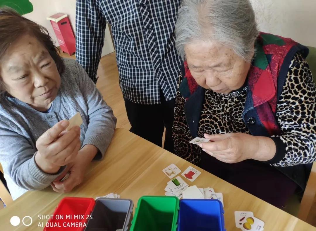 小小的垃圾桶模型,红、绿、蓝、黑四种颜色,老人们把印着不同图案的小卡片,分门别类放进去。旧衣服该放哪儿,肉骨头该扔啥桶里……老人们的那股认真劲儿,为养老驿站增添更多生活的色彩。老人们说,国家出台的每一项措施,所有公民都有责任、有义务来贯彻,“虽说老了,可我们也不能落伍啊。”