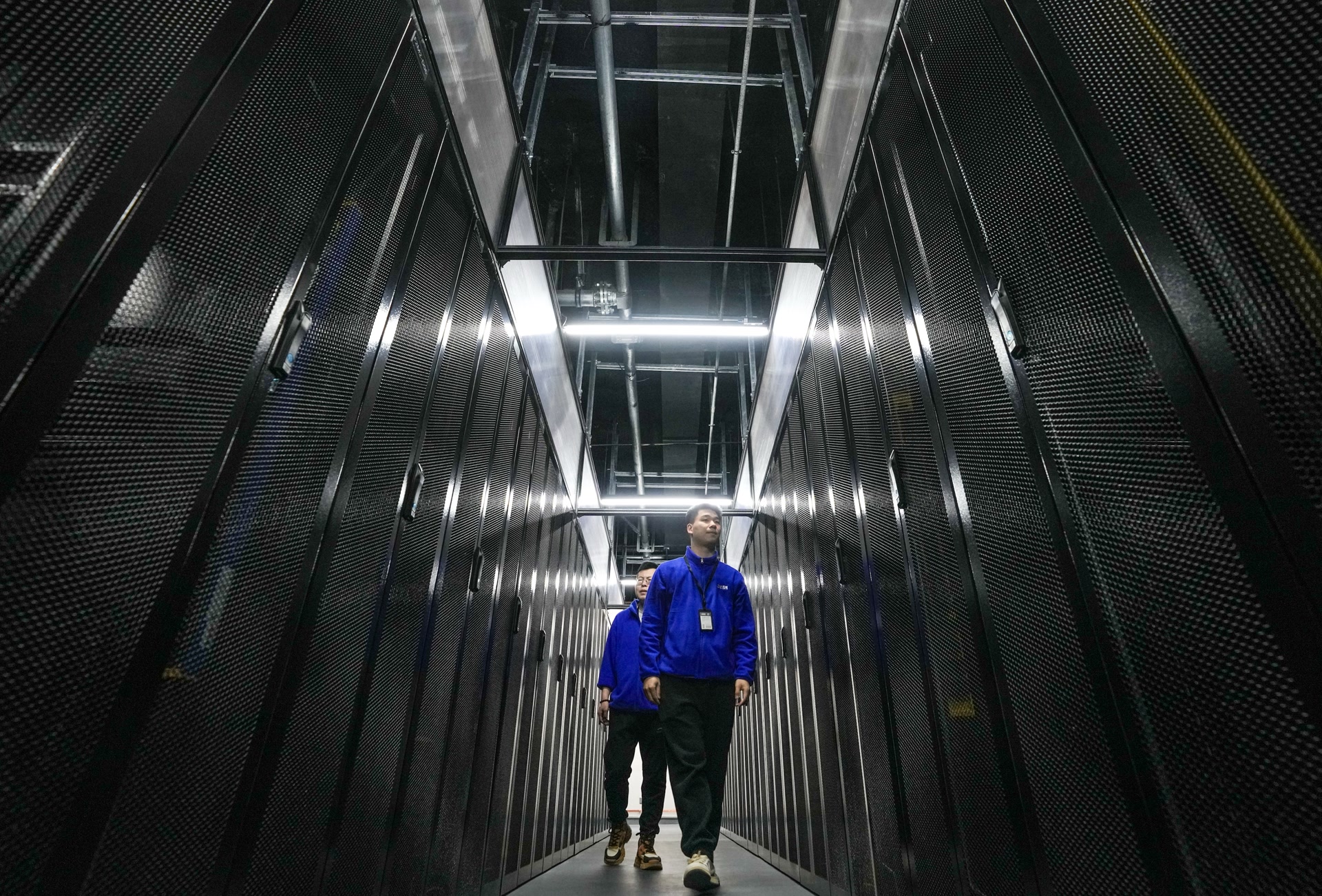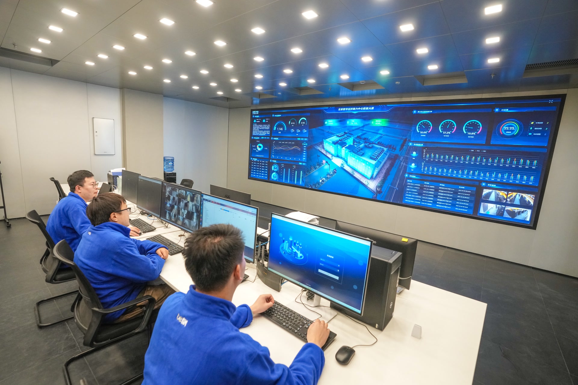 北京数字经济算力中心内,工作人员在查看中心各项运转数据。