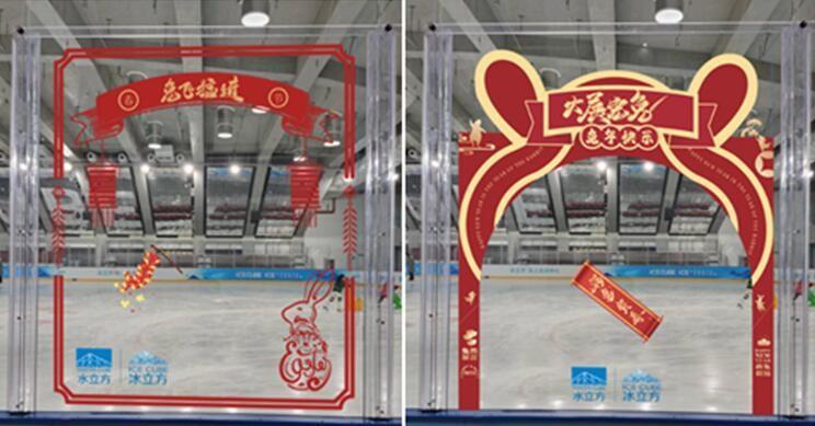 Spring Festival-themed photobooths are seen at the venue's Ice Sports Center. [Photo courtesy of the National Aquatics Center]