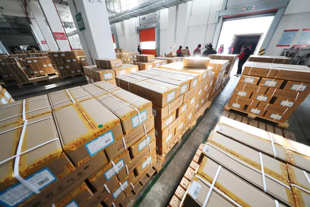 首都航空开通绿色通道,首批俄罗斯华商捐赠的244箱医用口罩、防护服、护目镜等物资运抵杭州。