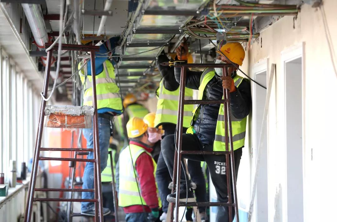 大年三十和正月初一,建工集团京内各留守项目部调集人员全力开始工程建设。城建集团停下正在进行装修改造的城建科技大厦工程,将所有工人全部派往小汤山医院。