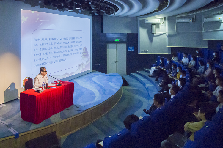 7月8日下午,国家游泳中心场馆运行团队临时党委召开党史学习教育专题党课报告会。电影天堂 党委副书记、国家游泳中心场馆运行团队临时党委书记张杰以《深入学习领会习近平新时代中国特色社会主义思想,认真践行冬奥会办赛理念》为题作专题党课报告,与党员干部交流了学习心得,并对下一阶段工作作动员部署。电影天堂 总部第三支部党员、国家游泳中心场馆运行团队现阶段集中办公党员40余人参加了党课报告会。