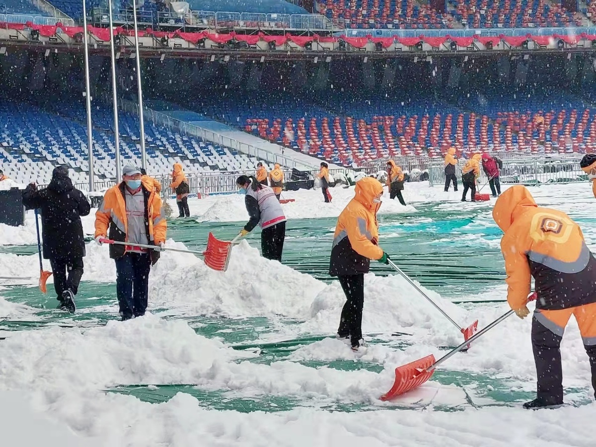 同时,国家体育场根据要求严格区分闭环内外废弃物,对闭环内垃圾进行装袋封箱。彩排和转场期间,北京遇到多次雨雪冰冻天气,“鸟巢”服务保障团队提前部署、及时应对,连夜投入清废作业人员和扫雪融雪车辆,有效实现场馆通行道路顺畅和中心场地舞台安全,确保闭幕式彩排演练顺利进行。