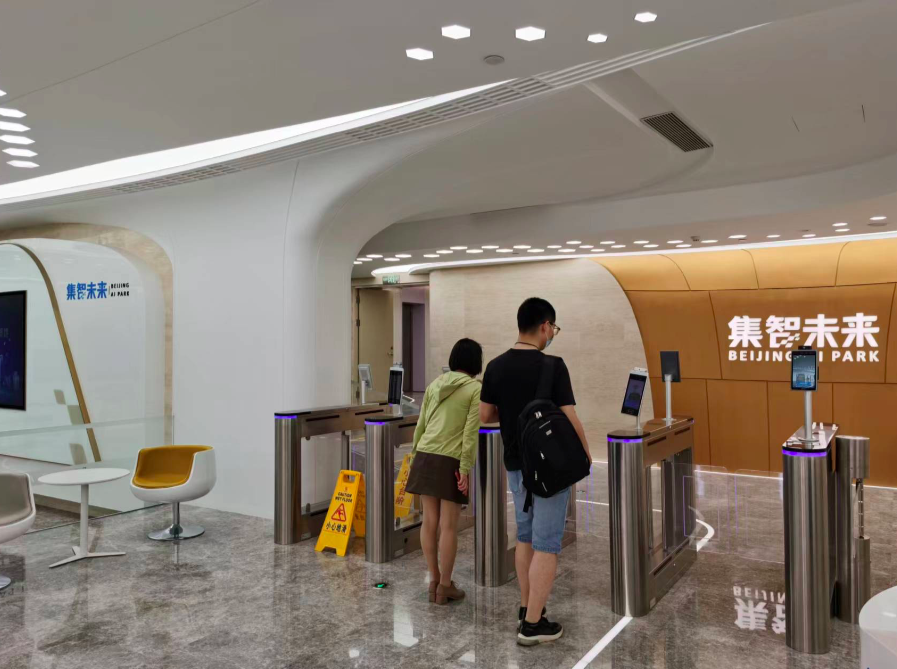 园区办公楼内,设有人脸识别闸机系统,3到5秒钟便可识别人员身份、查验人员健康宝信息、实时测温,完成疫情防控常态化下的进楼“三步走”。本月园区还会将核酸检测阴性证明信息纳入通行系统中,从而实现四位一体检测检验。