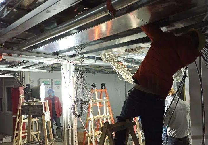 面对复杂的施工环境,团队负责人随时与设计师碰方案、调进度、码人员,与现场多个专业团队勤作沟通,打好整体仗。为确保物资及时供应,技术人员和采购人员共同想办法,紧急联系各供货商拓展渠道。遇到物流快递来不及运输的问题,采购人员就立即联系跨省包车,克服困难保证物资的及时进场。