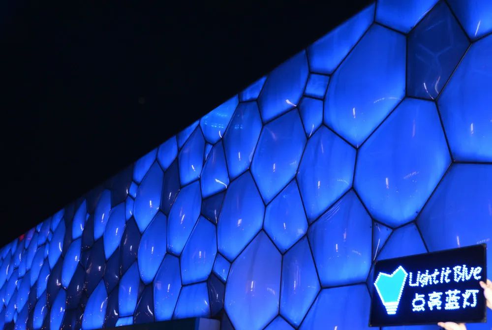这是水立方连续第十次举办“点亮蓝灯”公益活动,也是冰丝带继去年整体亮相后,首次以亮灯的形式参与公益活动。